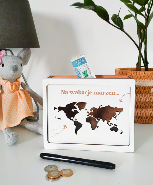 Skarbonka Wykreślana z Mapą - BIAŁA