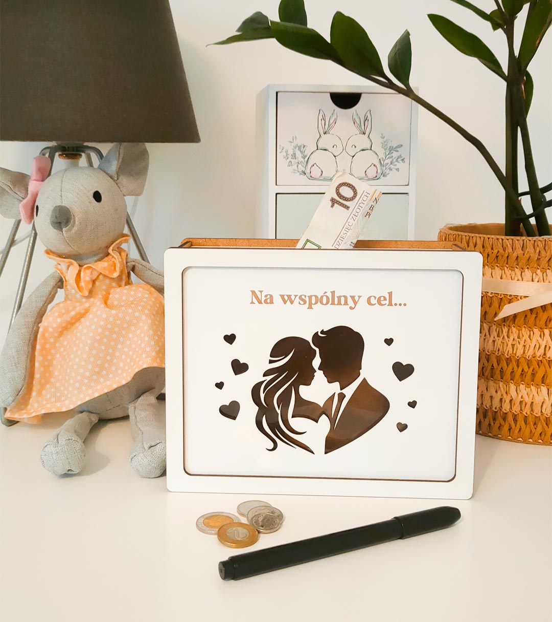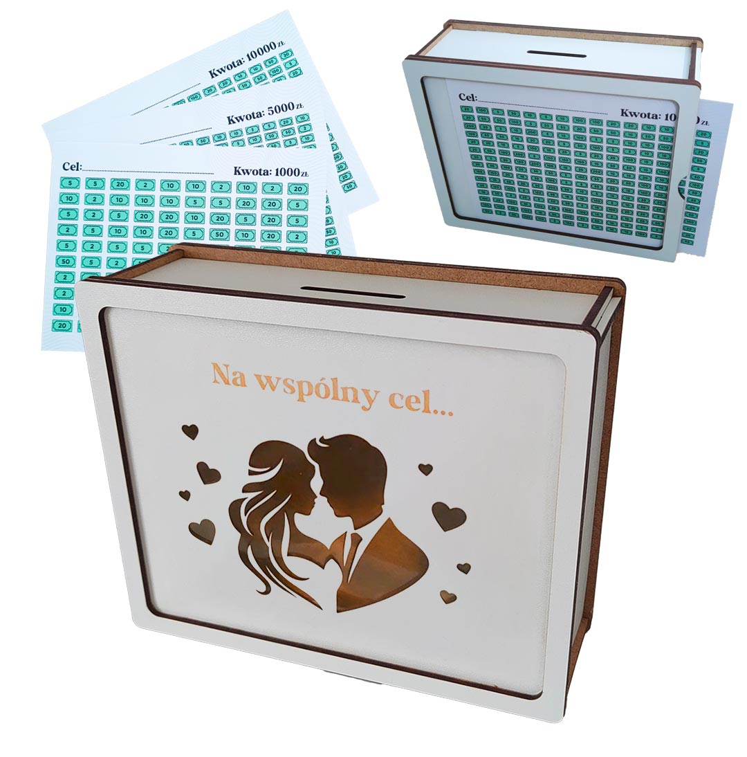Skarbonka Wykreślanka dla Pary, Prezent na Walentynki – Na Wspólny Cel ślub, wesele, podróże czy samochód.
